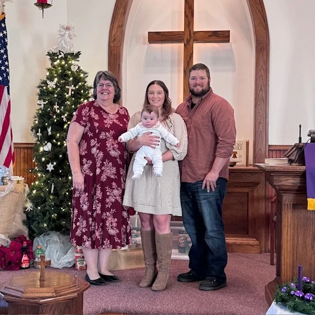 A baptism of faith was held in February, 2025, for little Callie pictured here with her parents, Derek & Juliana.